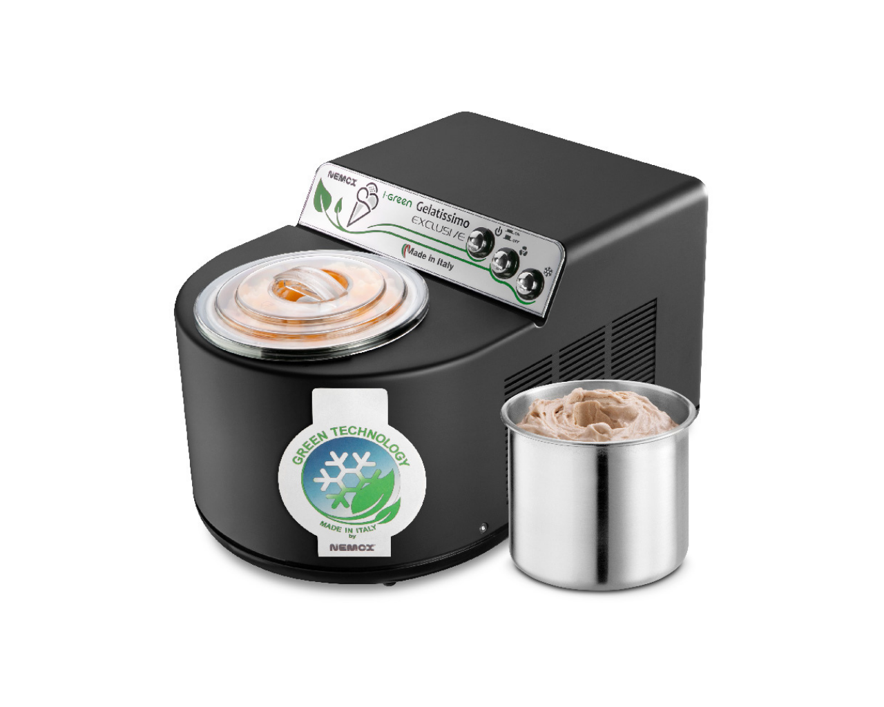 Gelatissimo Exclusive i-Green ir inovatīva saldējuma iekārta, kas izmanto jaunu aukstumnesēju bez ietekmes uz vidi. Tā ir videi draudzīga, efektīva un viegli lietojama, piemērota gan mājām, gan maziem uzņēmumiem.