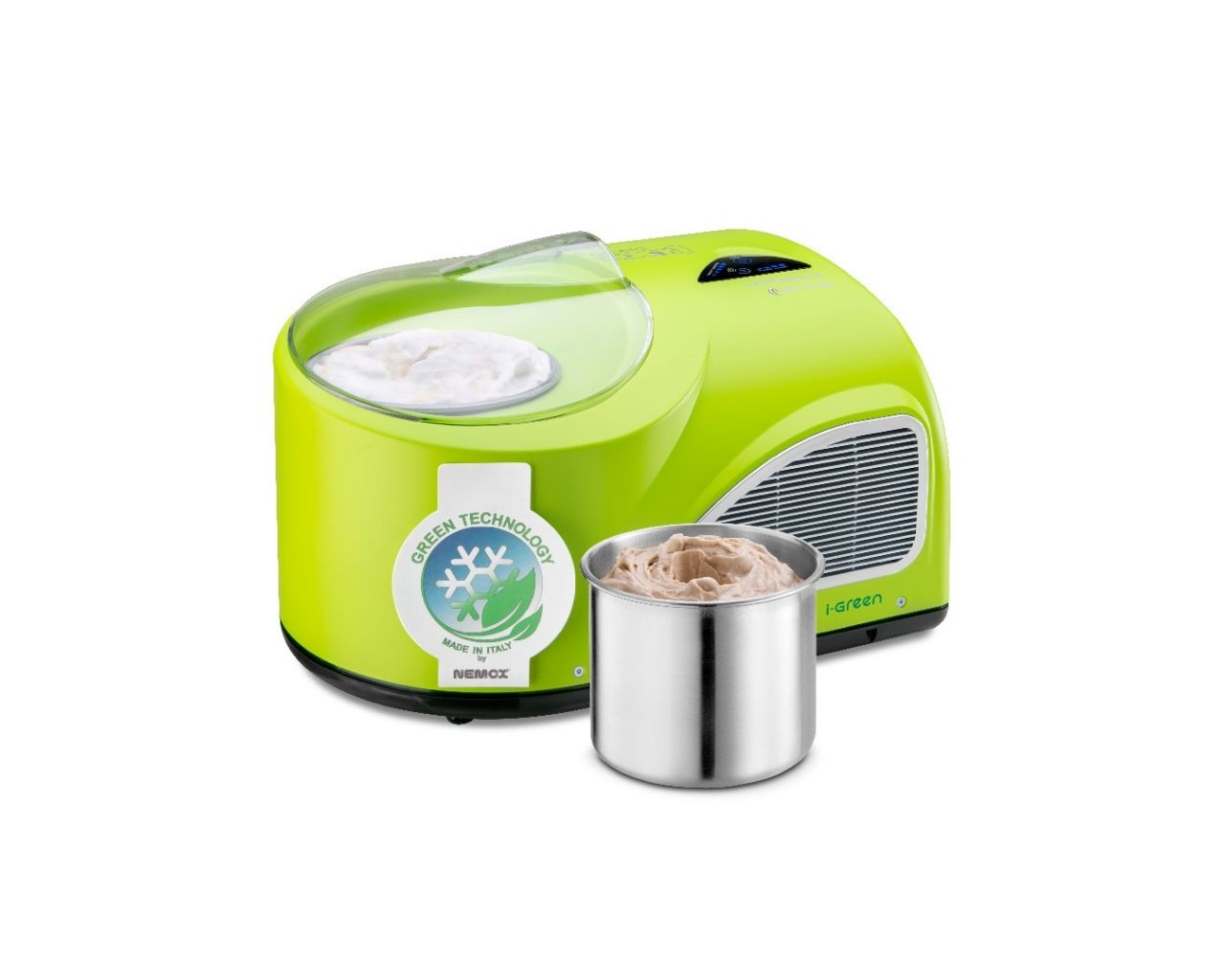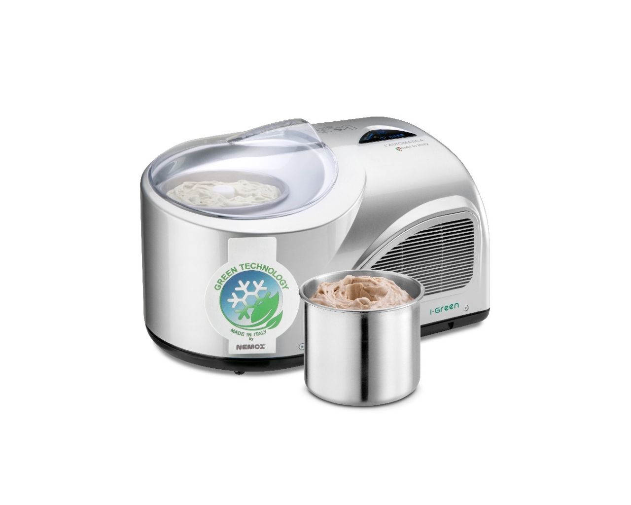 Gelato NXT1 l'automatica i-Green ir vienīgā pilnībā automātiskā sadzīves saldējuma gelato iekārta pasaulē. Viens pieskāriens ļauj uzsākt saldējuma, saldēta jogurta, sorbeta un citu gelato produktu ražošanu.