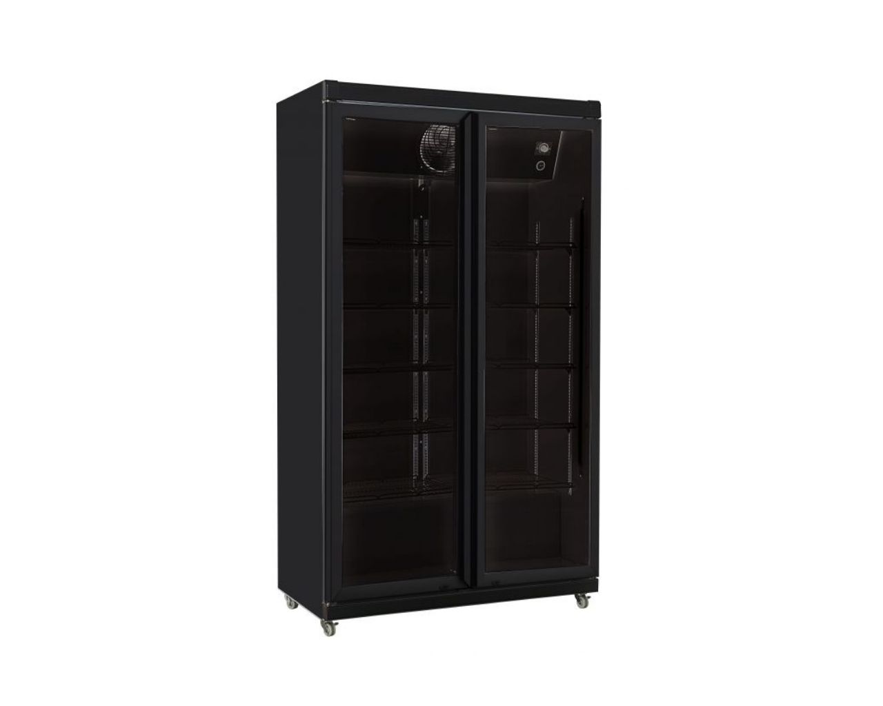 CombiSteel AVL-785R BL ir divdurvju vitrīnas ledusskapis ar dinamisko dzesēšanu, kas piemērots profesionālai dzērienu un citu produktu uzglabāšanai un demonstrēšanai.