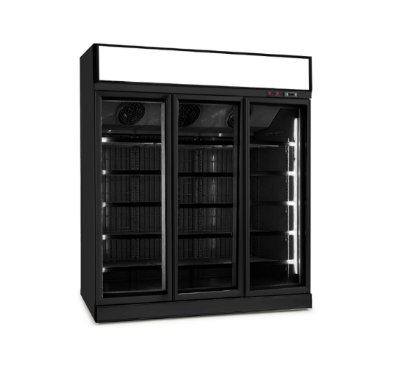CombiSteel INS-1530R Melns ir profesionāls trīs durvju vitrīnas ledusskapis ar lielu ietilpību un dinamisko dzesēšanu, kas piemērots dažādām tirdzniecības un uzglabāšanas vajadzībām.