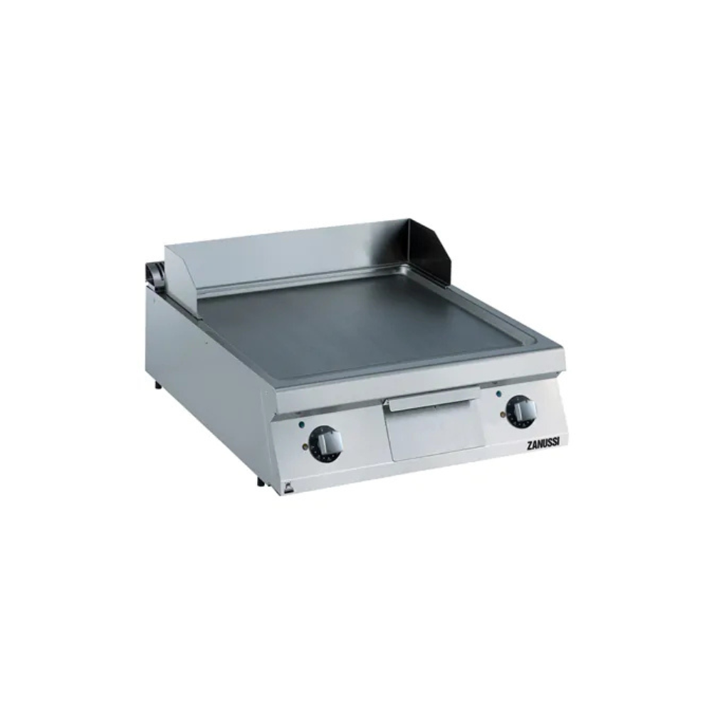Jaudīga pilna moduļa elektriskā cepšanas virsma ar gludu, horizontālu matēta hroma cepšanas virsmu, kas nodrošina vienmērīgu siltuma sadali un lielisku gatavošanas pieredzi. Pateicoties 15 kW jaudai un precīzai termostatiskajai vadībai, šī ierīce ir ideāli piemērota intensīvai lietošanai profesionālās virtuvēs. Komplektā ietvertie skrāpis un tauku apturētājs (stopper) garantē ērtu kopšanu un darbības efektivitāti.