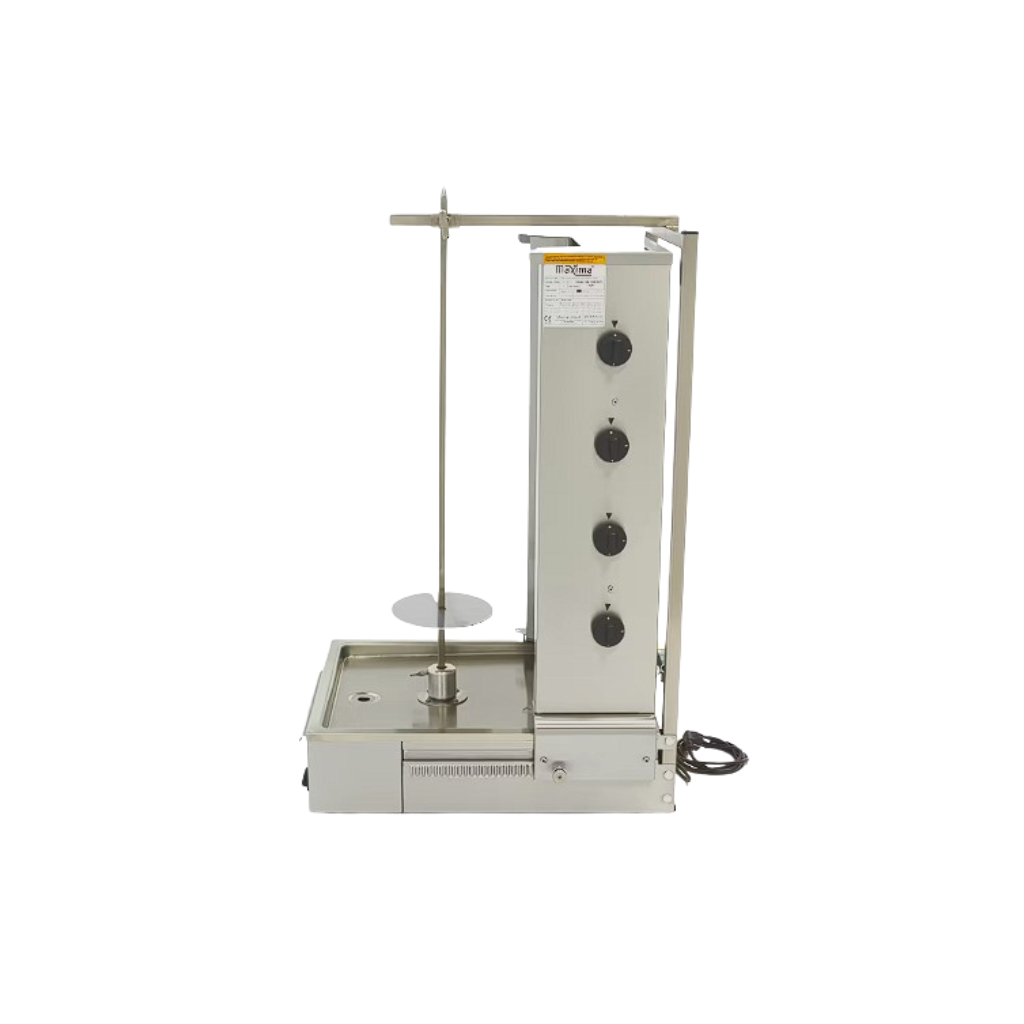 Maxima 4BM - GAS ir profesionāls kebaba grils ar četriem neatkarīgi regulējamiem gāzes degļiem un motoru apakšā. Tas ir piemērots girosu, kebabu, šavarmas un citu gaļas ēdienu grilēšanai, piedāvājot uzticamību un augstu veiktspēju intensīvai lietošanai ēdināšanas iestādēs.