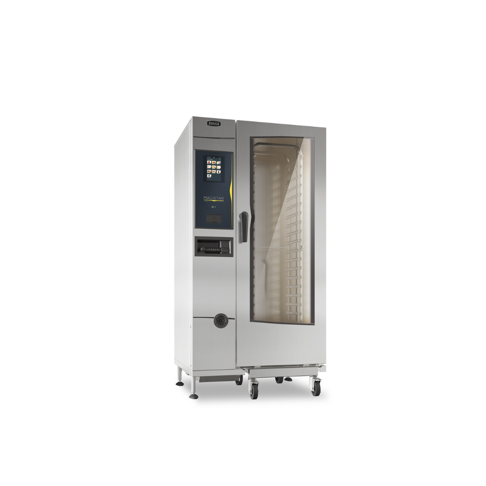 Magistar Combi TS elektriskā kombinētā krāsns ar 20x1/1GN ietilpību ir radīta profesionālām virtuvēm, kur nepieciešama augsta veiktspēja un efektivitāte. Trīs gatavošanas režīmi – automātiskais, recepšu programmās balstīts un manuālais – nodrošina elastību, savukārt automātiskā tīrīšanas funkcija atvieglo uzturēšanu. Komplektā ietilpst 20 GN 1/1 trauku turētāju un 63 mm attālumu starp plauktiem.