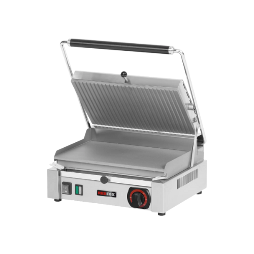 Kontaktgrils ar kombinētu virsmu Redfox PM 2015 L ir daudzfunkcionāls profesionāls grils, kas piemērots dažādu ēdienu pagatavošanai ēdināšanas iestādēs.