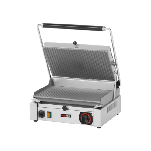 Kontaktgrils ar rievotu virsmu Redfox PM 2015 R ir profesionāls grils, kas nodrošina efektīvu un vienmērīgu ēdiena pagatavošanu. Piemērots intensīvai lietošanai ēdināšanas iestādēs.