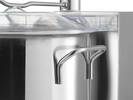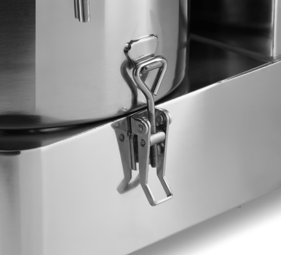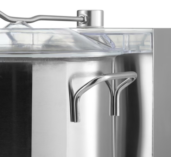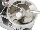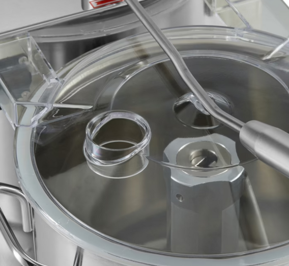 Работать с куттером просто и безопасно. Достаточно поместить ингредиенты в большую чашу из нержавеющей стали, закрыть прозрачной крышкой и зафиксировать с помощью двух предохранительных замков. Дополнительный фиксатор на крышке обеспечивает дополнительную безопасность во время работы. Через специальное отверстие в крышке можно безопасно добавлять ингредиенты в процессе измельчения. S-образное лезвие из нержавеющей стали легко справляется даже с плотными продуктами.