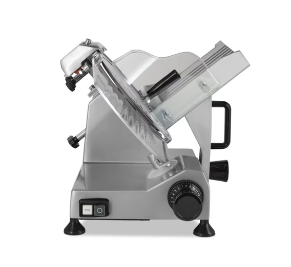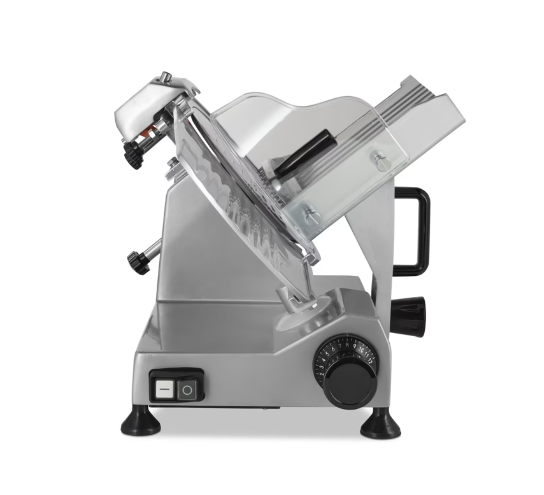 С этой профессиональной электрической мясорезкой вы сможете нарезать не только идеально ровные ломтики мяса, но и другие продукты. Стандартное лезвие, входящее в комплект, предназначено исключительно для нарезки мяса. Однако, если вы хотите нарезать и другие продукты, мы предлагаем дополнительные аксессуары: лезвие с тефлоновым покрытием для нарезки сыра и зубчатое лезвие для хлеба. Нарезка с помощью этого универсального кухонного прибора проходит легко и тихо. Закалённое лезвие из нержавеющей стали имеет диаметр 25 см, а толщина нарезки регулируется от 1 до 12 мм на ломтик. Это гарантирует, что колбаса, ветчина, салями и другие виды мяса всегда будут нарезаны с одинаковой толщиной.