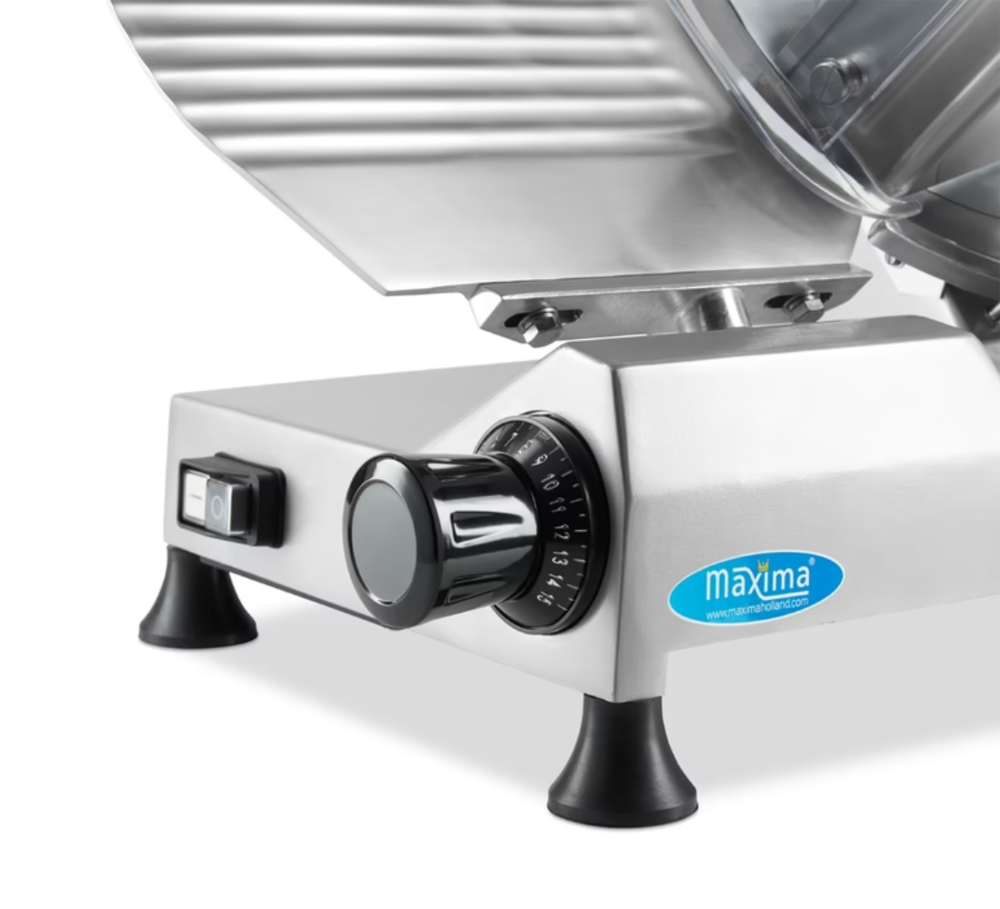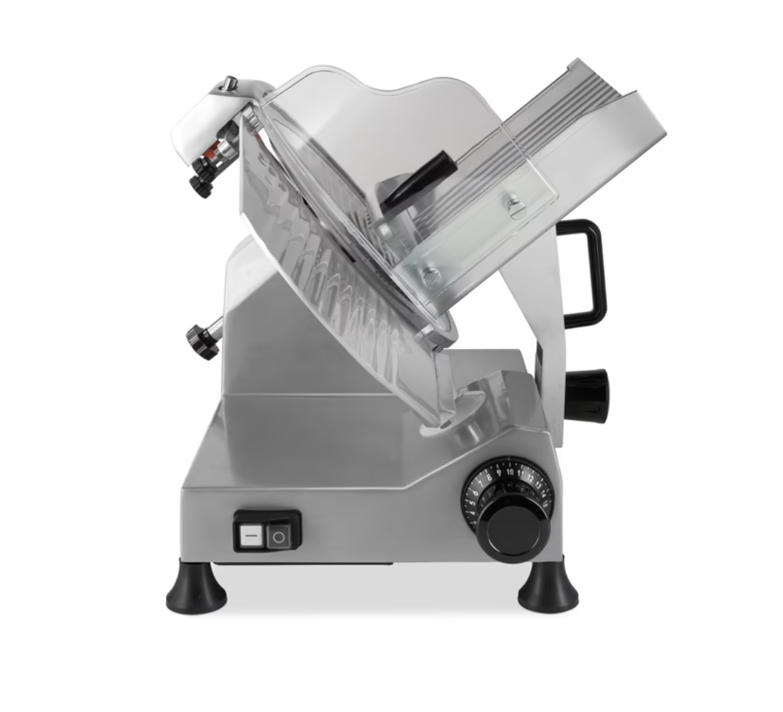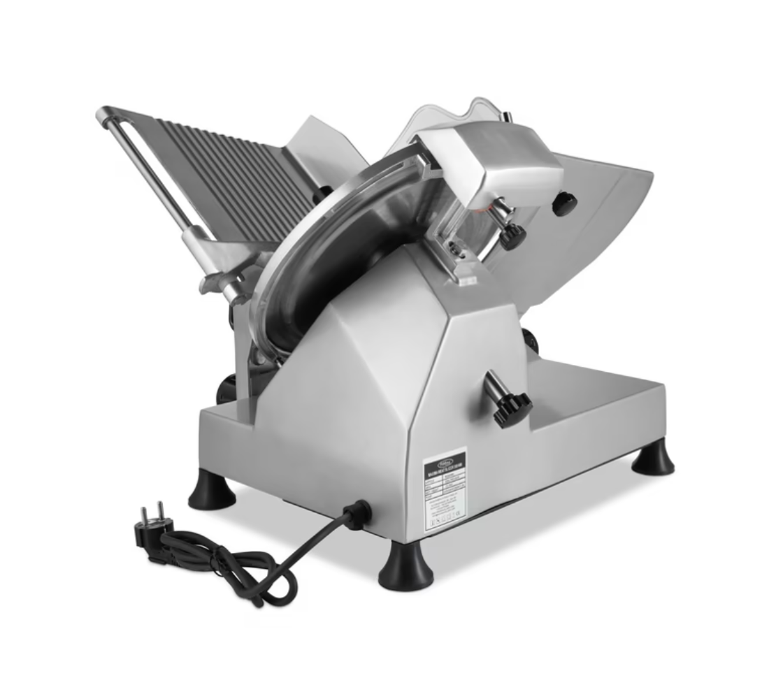 Эта профессиональная мясорезка станет отличным помощником на любой кухне общественного питания. Благодаря закалённому лезвию из нержавеющей стали диаметром 30 см вы легко нарежете мясо и другие продукты. Стандартное лезвие предназначено для мяса. Для нарезки сыра и хлеба доступны дополнительные аксессуары: тефлоновое и зубчатое лезвия. Мясорезка универсальна, работает очень тихо и подходит для использования даже в помещениях с клиентами.