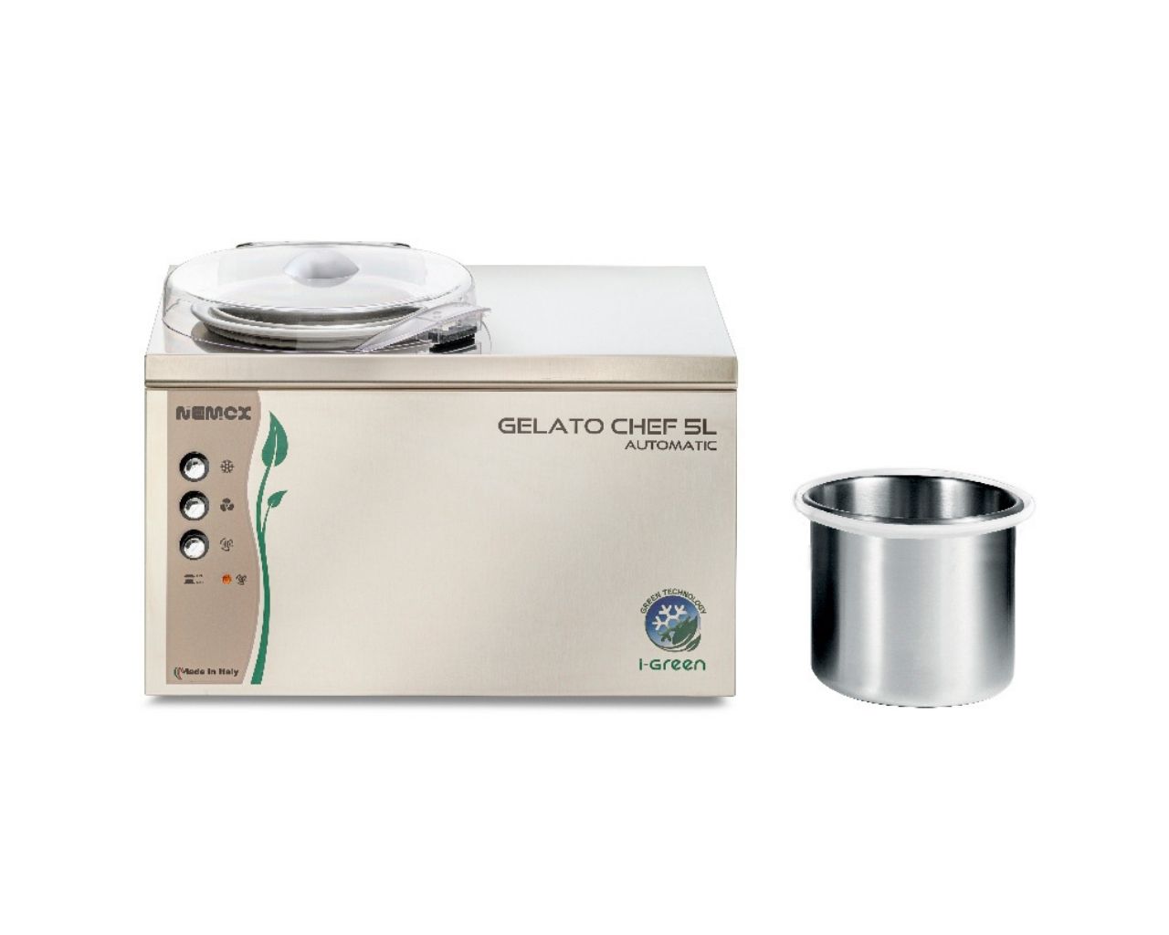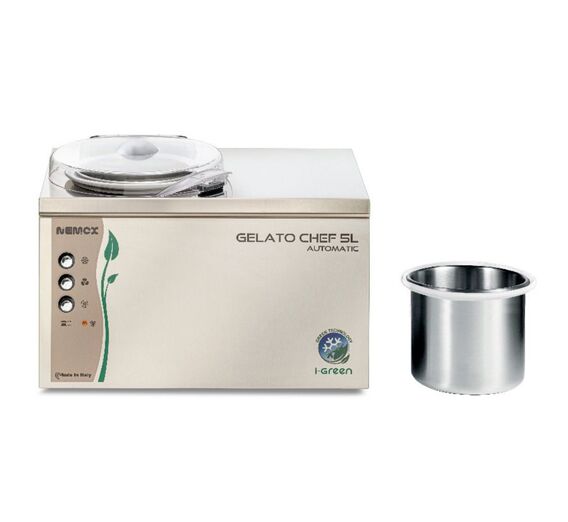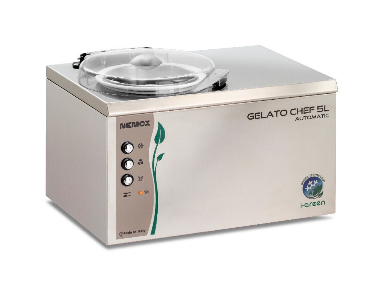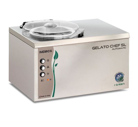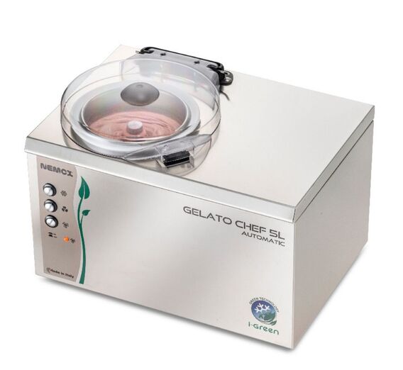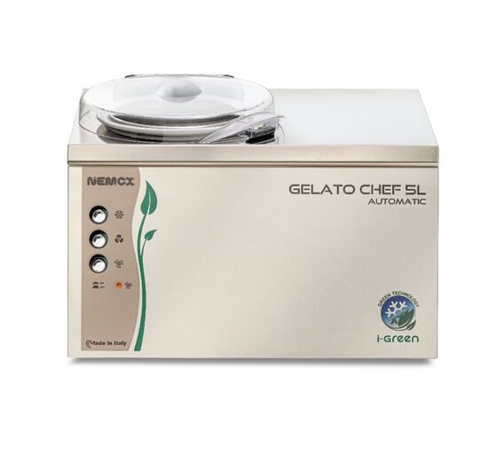 Gelato Chef 5L Automatic i-Green - это полупрофессиональная настольная машина для мороженого. Он был специально разработан для ресторанов и малых предприятий, которые хотят включить производство домашнего мороженого, но имеют ограниченный бюджет, но при этом стремятся к стандартам качества.