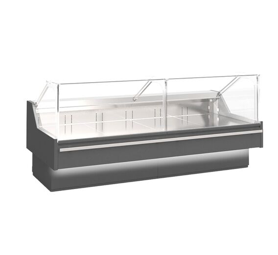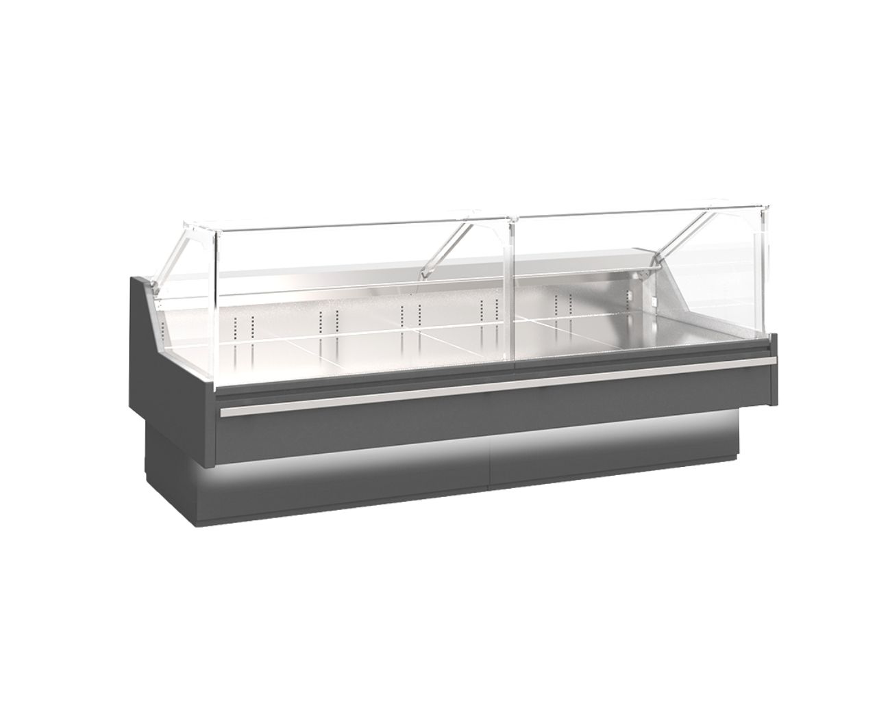 Витрина предназначена для оснащения магазинов и супермаркетов среднего и крупного форматов. Отличительной особенностью данной модели является полностью прозрачное остекление за счет прозрачных стоек из оргстекла. Кубическая форма витрины не только отражает современный тренд в дизайне торгового оборудования, но так же минимизирует световые блики от потолочного освещения.