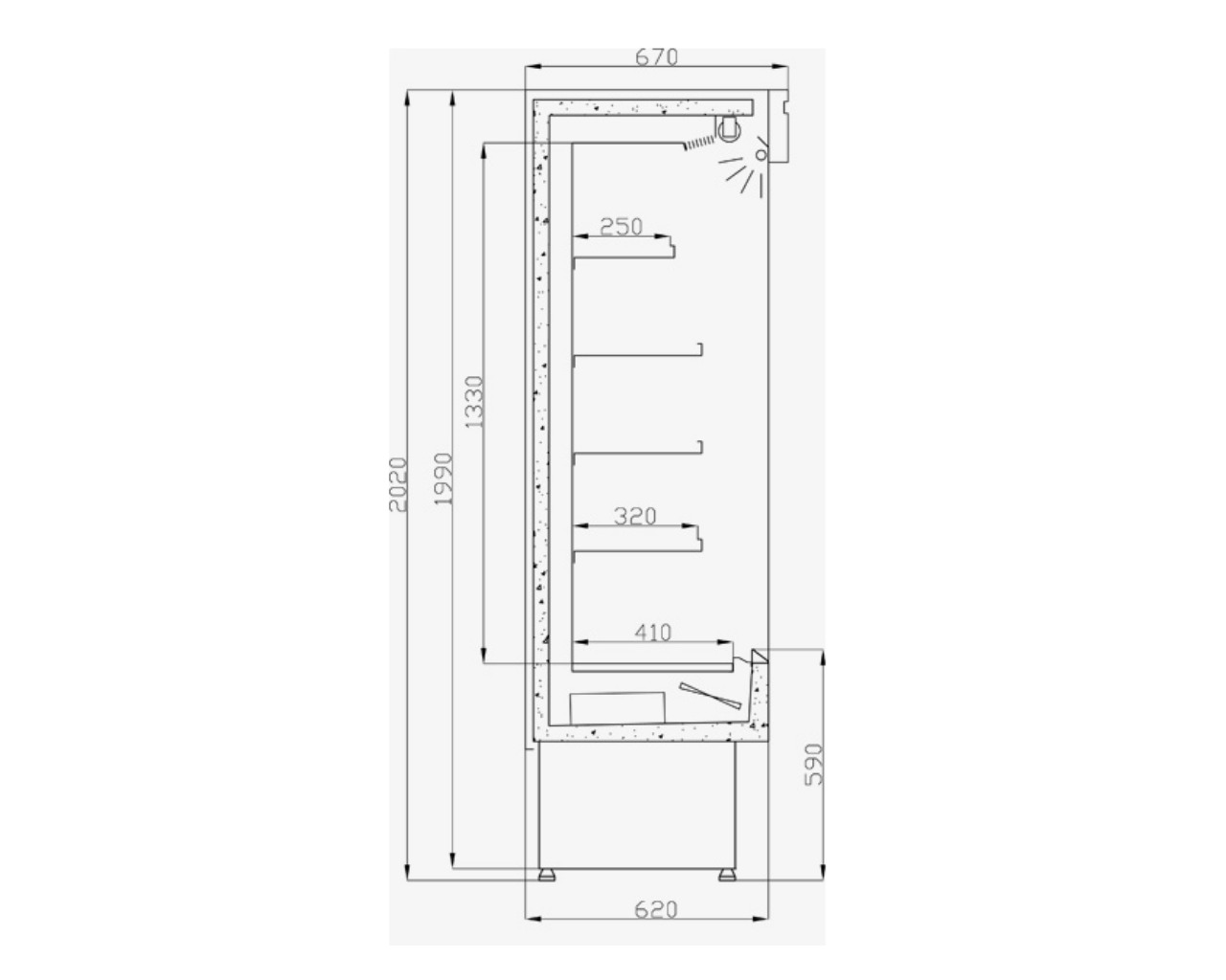 Серия витрин "R-B" имеет глубину только 620 мм. При разработке витрин этой серии особое внимание уделено увеличению полезной площади, эфективности системы охлаждения и повышению экономичности в электропотреблении.
