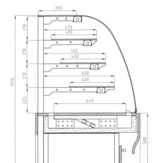 Холодильная кондитерская витрина "C-Gn" оснащена эффективной вентилируемой системой охлаждения, которая гарантирует стабильную температуру на каждой из полок. Имеется система контроля влажности, поддерживающая влажность воздуха в диапазоне 30-80 %. В витрине предусмотрен обогрев фронтального стекла теплым воздухом, а также система удаления конденсата, не требующая обслуживания. Облицовка корпусa выполнена из материала имитирующего дерево. Фронтальная панель оснащена подсветкой.