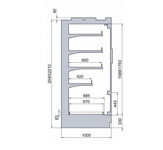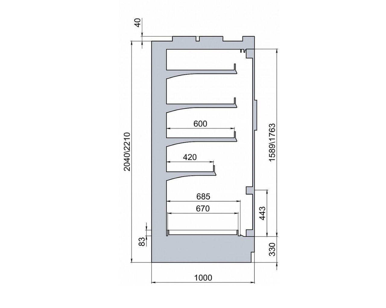 | Глубина выкладки, мм: | 590 мм (678 мм - основная полка) |