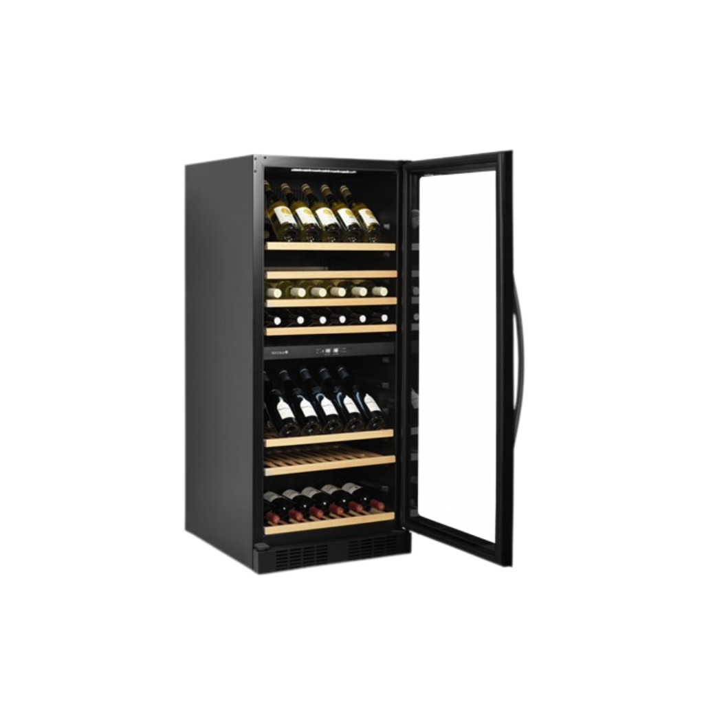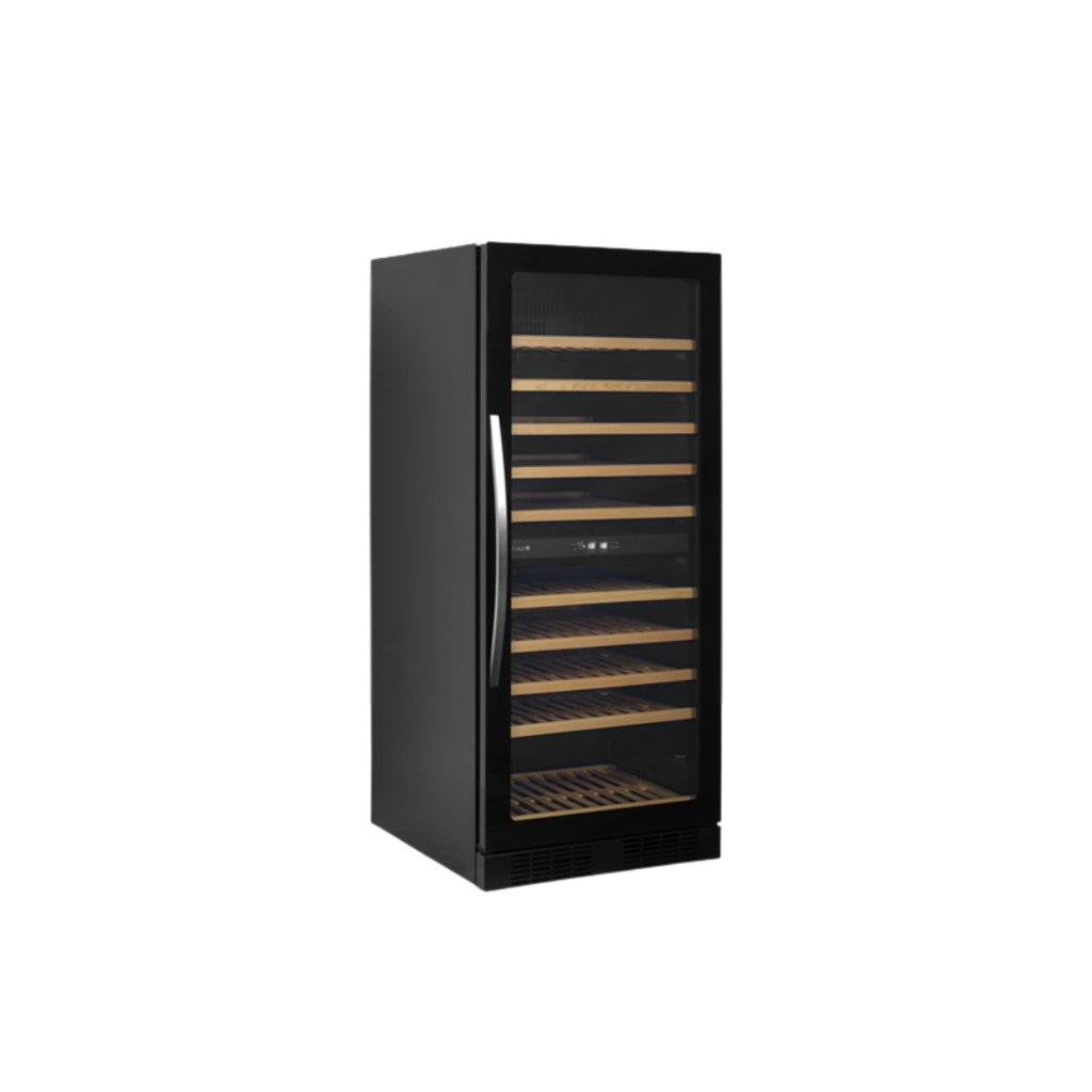Холодильники этой серии имеют стильную стеклянную дверцу без рамы и выдвижные деревянные полки, которые обеспечивают легкий доступ к содержимому. Белое светодиодное освещение красиво оттеняет винные бутылки на фоне черной внутренней поверхности шкафов. В дополнение к эксклюзивному дизайну, винный шкаф также имеют современную систему охлаждения, которая отличается низким уровнем выделения тепла, шума и энергопотребления.