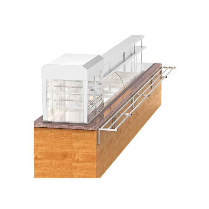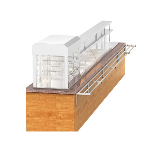Используется для демонстрации и раздачи ассортимента готовых блюд, не требующих подогрева или охлаждения, а так же для установки вспомогательного оборудования, например: чаераздатчиков, супниц, кипятильников и пр.