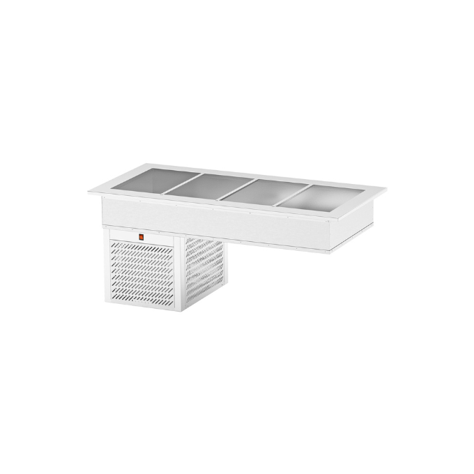Имеет охлаждаемую ванну, которая может иметь различную глубину, определяемую от способа обслуживания. В зависимости от выбраного способа обслуживания прилавок можно использовать по разному - или устанавливать гастроемкости с продуктами для раздачи, или тарелки с блюдами и стаканы с напитками и сметаной.