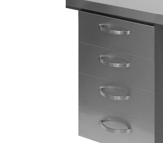Рабочая поверхность из нержавеющей стали AISI 304 . Конструкция стола выполнена из нержавеющей стали (квадратная труба 25х25 mm). Ноги изготовлены из нержавеющей стали (квадратная труба 40х40 mm). Ножки регулируются по высоте (амплитуда 35 мм). По необходимости стандартная высота (900 mm) может быть изменена.