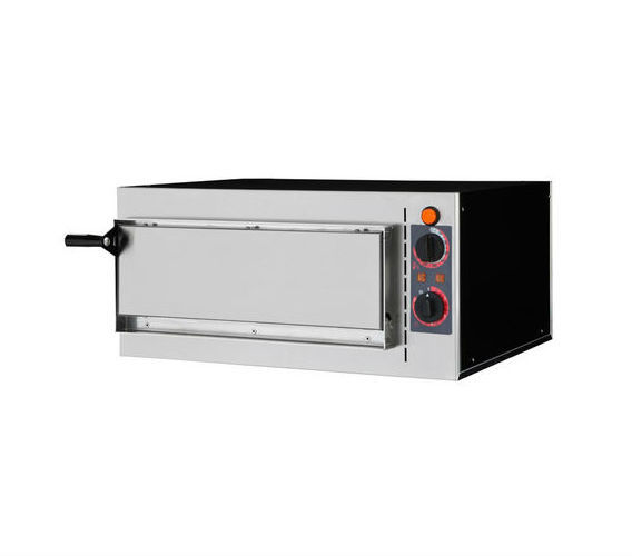 Контроль температуры осуществляется механически, корпус изготовлен из нержавеющей стали, поверхность выпекания выложена огнеупорным камнем, изоляция выложена волоконной ватой, особо прочные стальные ТЭНы, внутреннее освещение, внутренние размеры 410x360x90