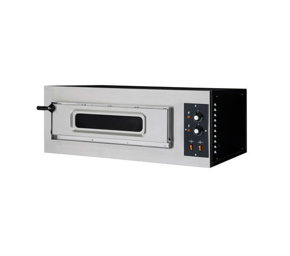 Контроль температуры осуществляется механически, корпус изготовлен из нержавеющей стали, поверхность выпекания выложена огнеупорным камнем, изоляция выложена волоконной ватой, особо прочные стальные ТЭНы, внутреннее освещение, внутренние размеры 620x500x120