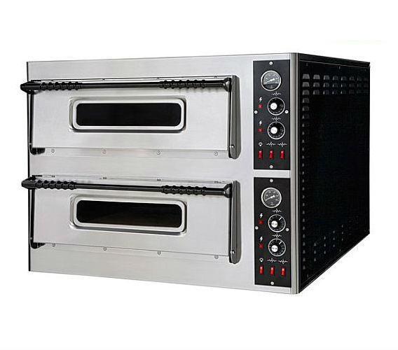 Контроль температуры осуществляется механически, корпус изготовлен из нержавеющей стали, поверхность выпекания выложена огнеупорным камнем, изоляция выложена волоконной ватой, особо прочные стальные ТЭНы, внутреннее освещение, внутренние размеры 660x660x140