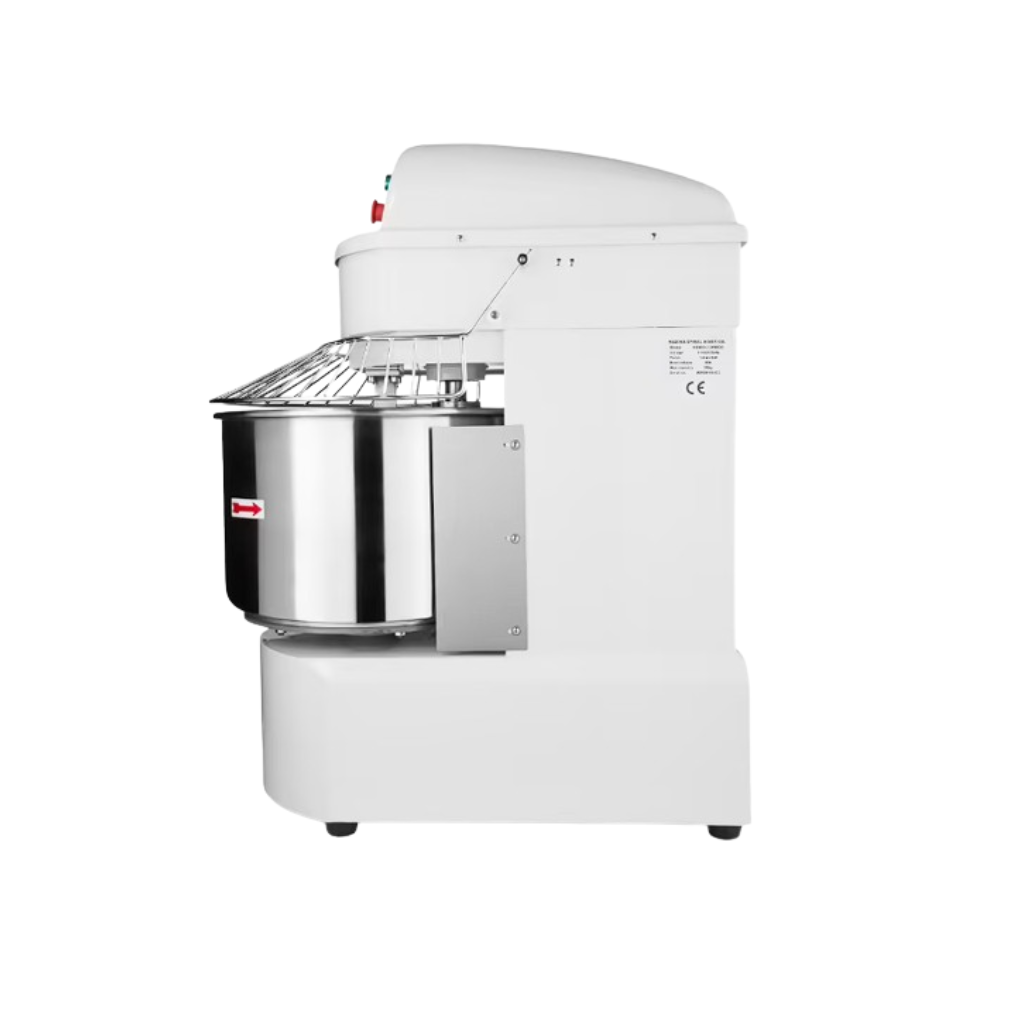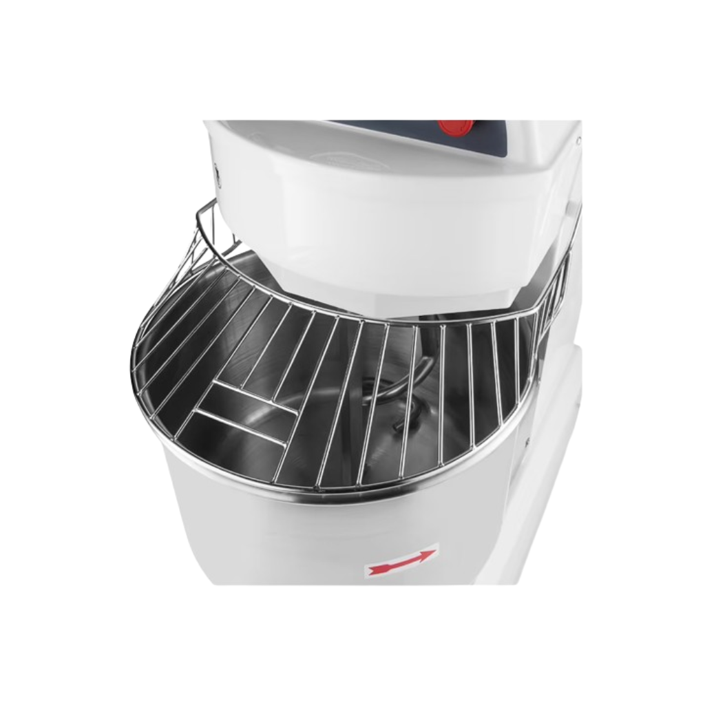 Ручной замес больших объемов теста требует времени и физических усилий. Профессиональный тестомес с чашей объемом 60 литров позволяет замешивать до 38 кг теста (до 24 кг муки). Минимальная загрузка — 20 кг теста. Вращение чаши и крюка обеспечивает равномерное смешивание, что делает устройство идеальным для приготовления теста для хлеба и пиццы.