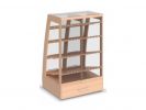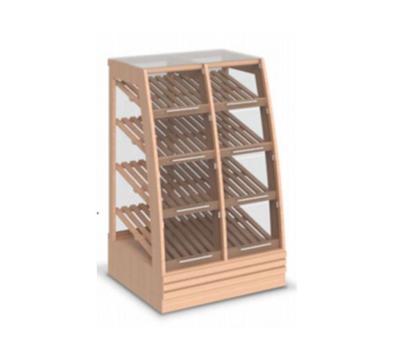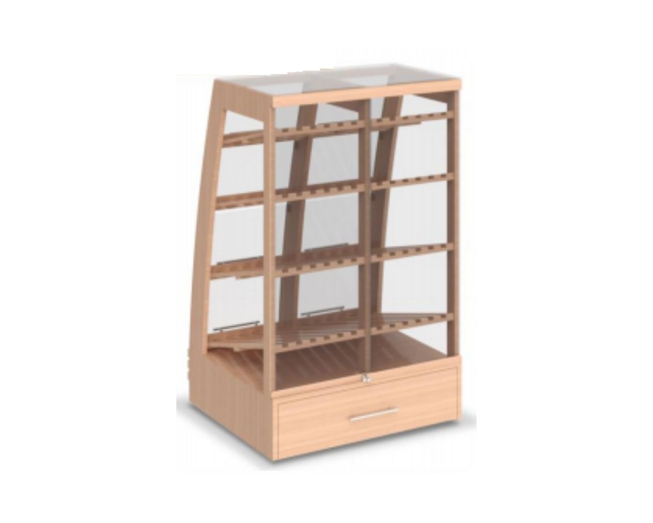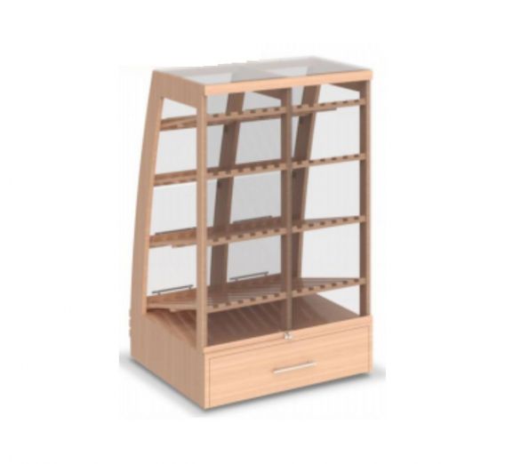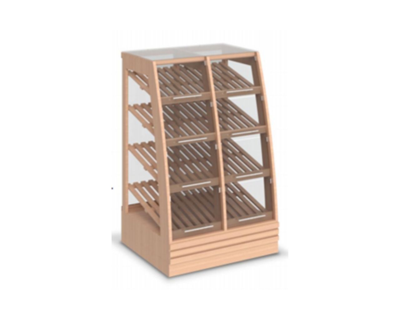 Стеллаж из массива бука с передними дверцами из каленого стекла – солидное решение для ресторанного сегмента, а также магазинов направления «эко».
