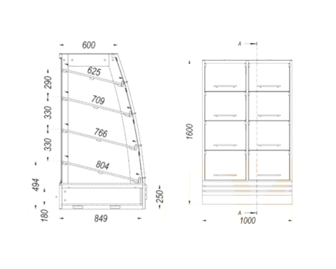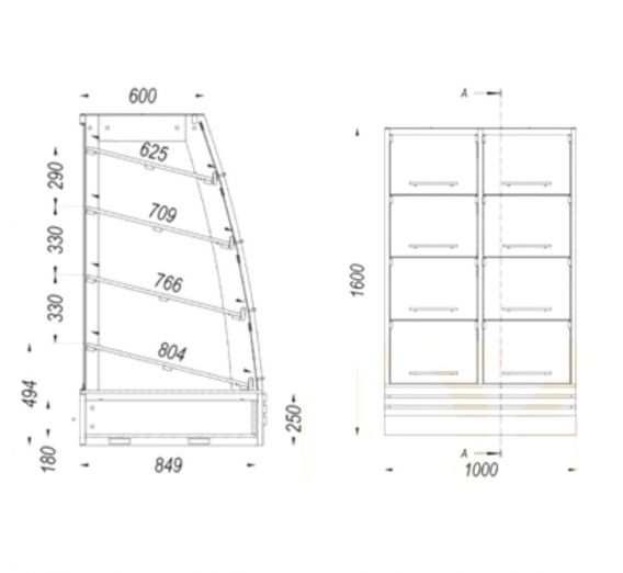 | Глубина полки, мм: | 804, 766, 709, 625 |