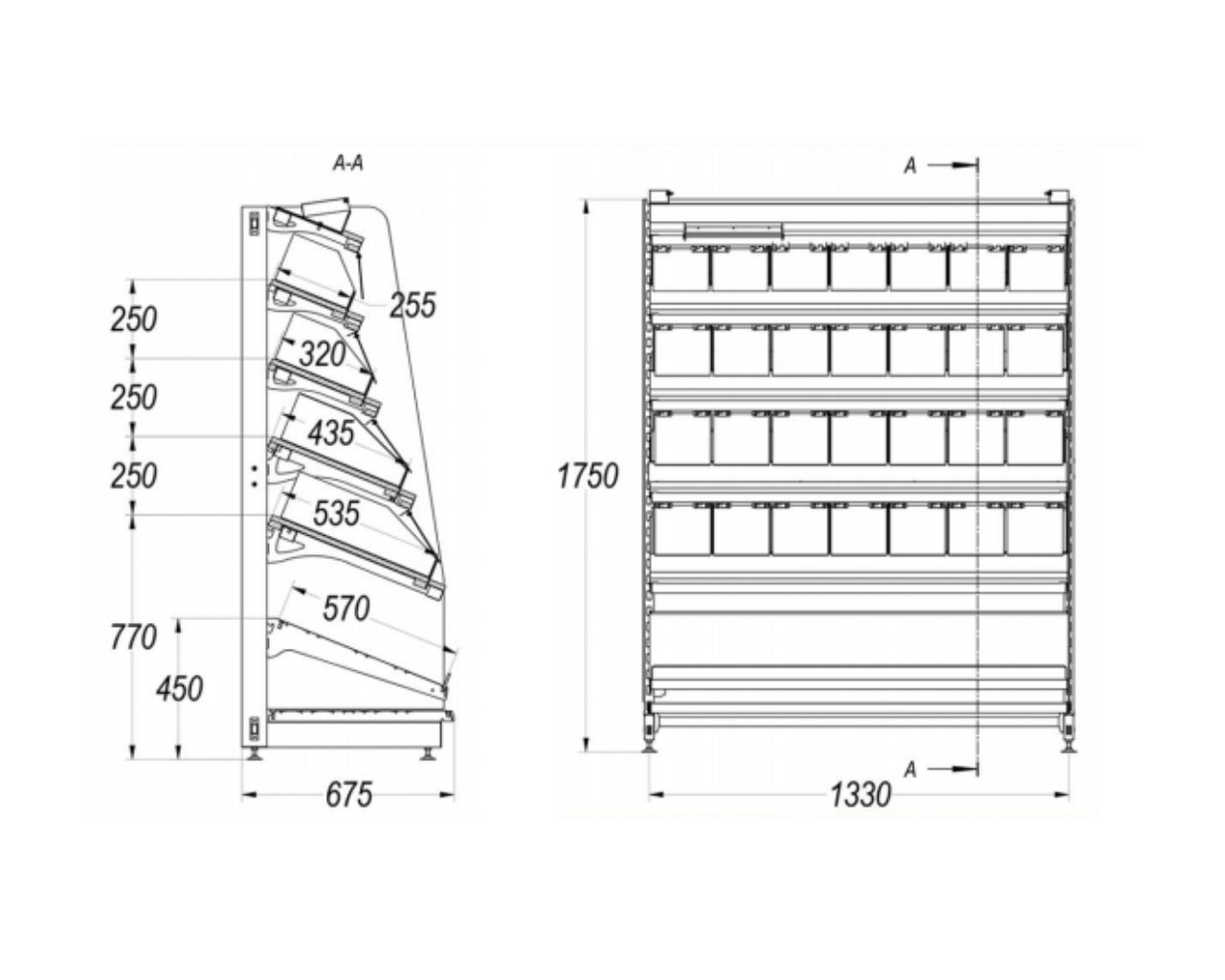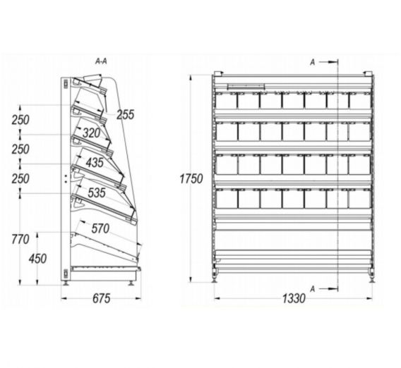 | Глубина полки, мм: | 570, 535, 535, 320 |