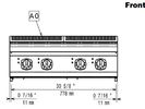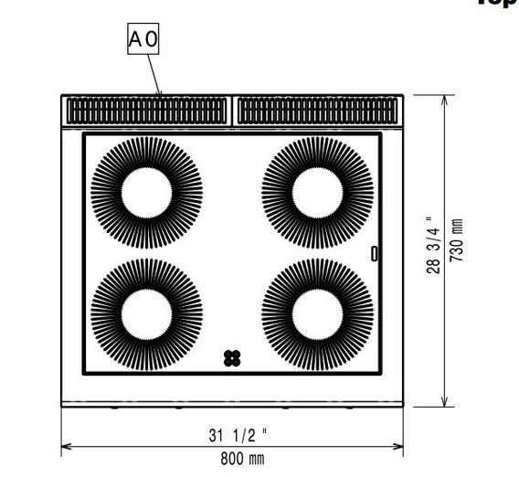 Керамическая поверхность толщиной 6 мм с 4 независимо контролируемыми зонами индукции 5,0 кВ (каждая), со сплошным переходом между отдельными зонами нагрева. Наружные панели из нержавеющей стали с отделкой Scotch Brite. Часть спрессованной рабочей поверхности из нержавеющей стали толщиной 1,5 мм. Прямоугольные боковые края, позволяющие выполнять соединение между несколькими позициями.