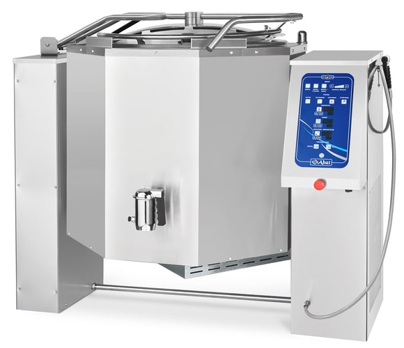 Слив готового продукта происходит путем опрокидывания варочного сосуда с помощью электропривода. Также данный котел оснащен сливным краном, позволяющим производить слив готового продукта без опрокидывания. Для гигиенической чистки сосуда котлы снабжены душирующим устройством.
