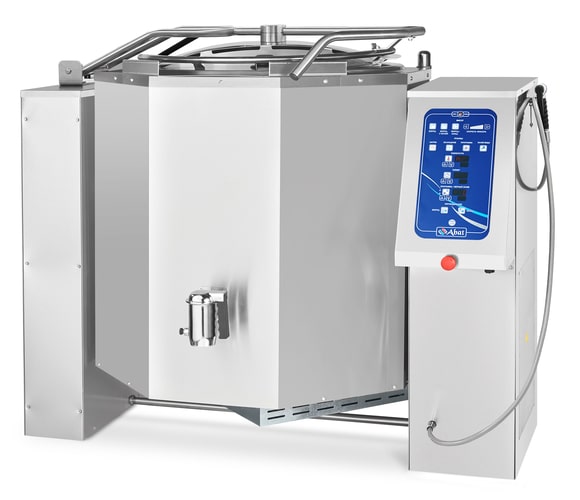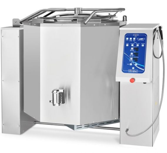 Слив готового продукта происходит путем опрокидывания варочного сосуда с помощью электропривода. Также данный котел оснащен сливным краном, позволяющим производить слив готового продукта без опрокидывания. Для гигиенической чистки сосуда котлы снабжены душирующим устройством.