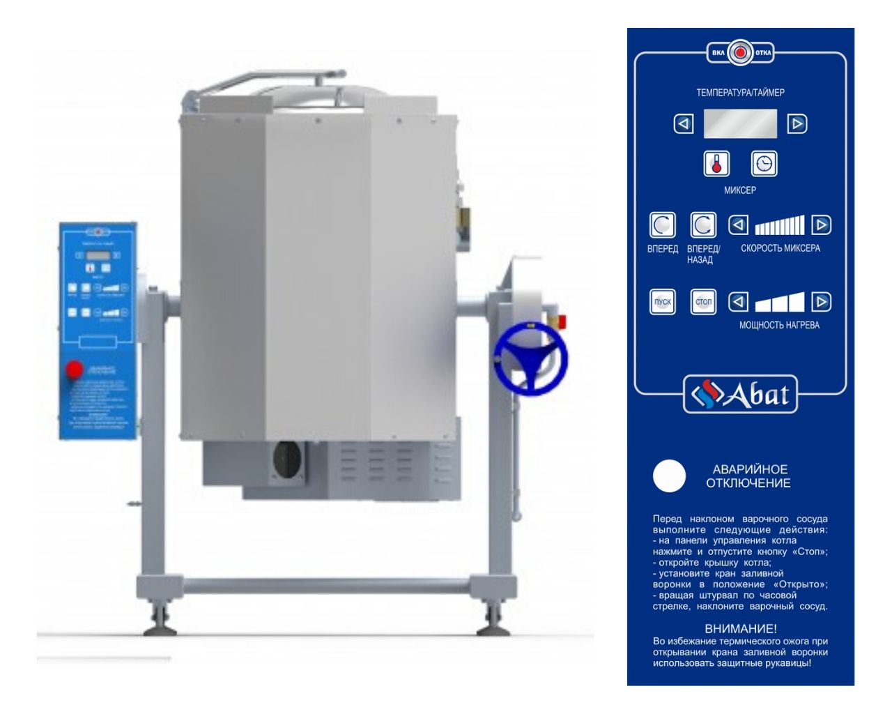 Котел пищеварочный электрический с функциями перемешивания и ручного опрокидывания КПЭМ-60-ОМР-В предназначен для приготовления бульонов, первых, вторых и третьих блюд. Используется на предприятиях общественного питания самостоятельно или в составе технологических линий.