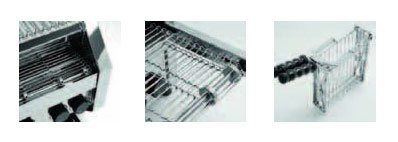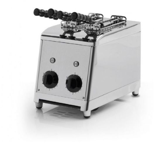 Прочный и надёжный тостер изготовленный полностью из нержавеющей стали с различными видами поджаривания хлеба. Тостер имеет высокий уровень безопасности, он оснащен изотермической камерой для приготовления пищи, что предотвращает перегрев наружной поверхности, защищает от ожогов и предотвращает бесполезный расход тепла. Тостер оснащен вентилятором охлаждения двигателя, а также регулятором времени приготовления. Щипцы специально изготовлены так, чтобы держать фаршированные бутерброды, не проливая их наполнение. Тостер имеет удобный ящик для сбора крошек.
