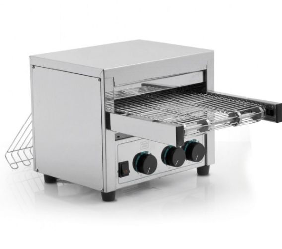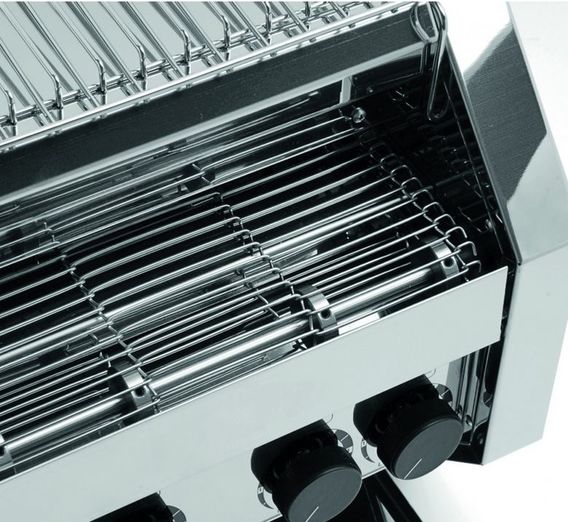 Прочный и надёжный роликовый тостер изготовленный полностью из нержавеющей стали с различными видами поджаривания хлеба. Тостер имеет высокий уровень безопасности, он оснащен изотермической камерой для приготовления пищи, что предотвращает перегрев наружной поверхности, защищает от ожогов и предотвращает бесполезный расход тепла. Тостер оснащен вентилятором охлаждения двигателя, а также регулятором времени приготовления. Тостер имеет удобный ящик для сбора крошек.
