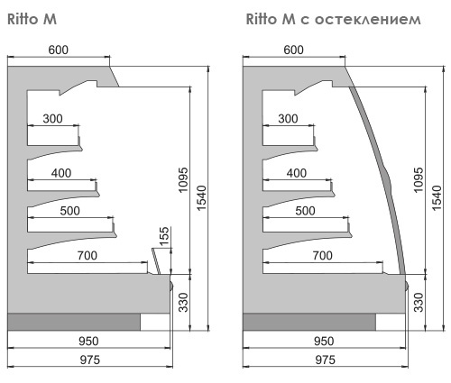Стеллажи POLAIR Ritto обеспечивают надежное охлаждение в температурном диапазоне от +1 °С до +7 °С. Стеклянные боковины увеличивают обзорность продуктов, а горизонтальная LED-подсветка повышает привлекательность товара на полках. Полувертикальные стеллажи POLAIR Ritto отличаются простотой сборки и могут быть смонтированы в единую линию.