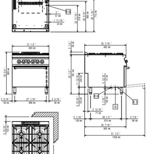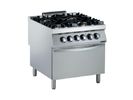 Profesionāla gāzes plīts ar elektrisko cepeškrāsni, paredzēta vārīšanai, cepšanai un citu veidu produktu termiskai apstrādei.